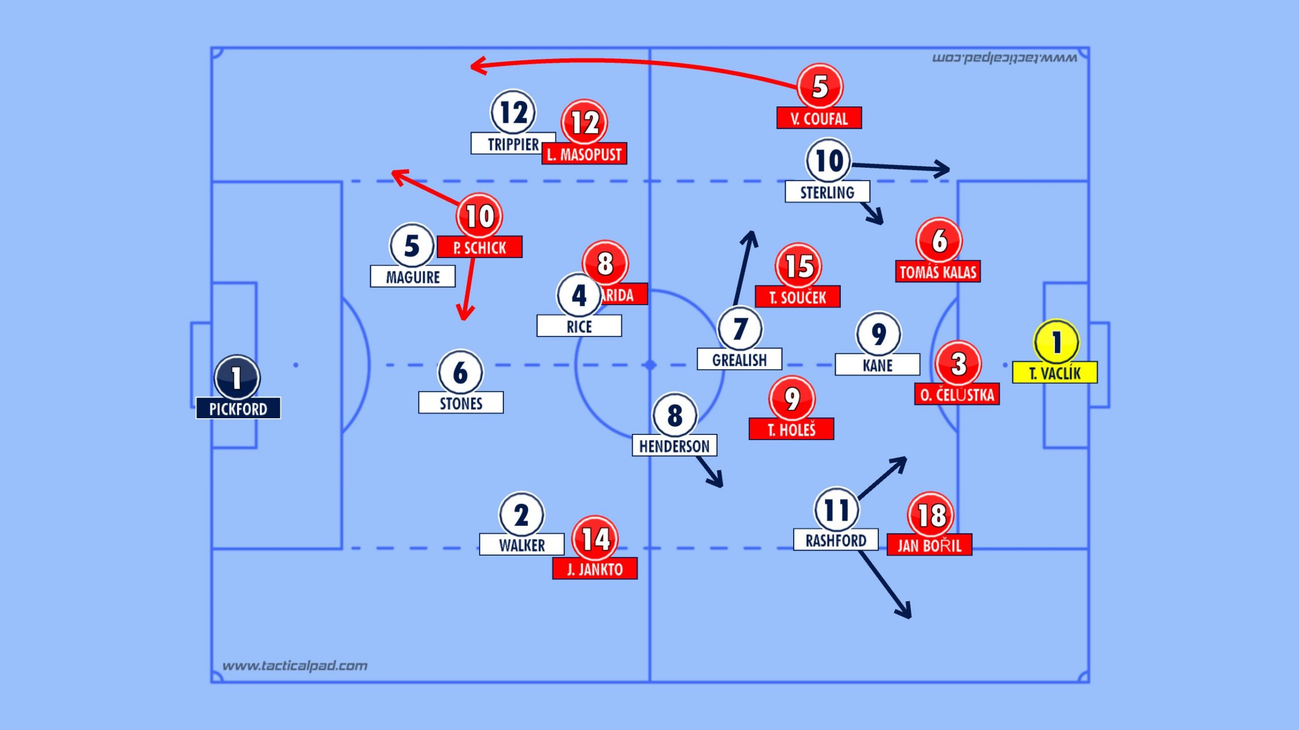 The majority of the Czech's attacks come down their right flank, with Coufal proving to be a particularly influential figure in attack - driving forward or bombing forward to join the attack at any given opportunity. His link up play with Masopust has been a delight to watch during these Championships and with Schick also drifting over to this side... The Czech's possess a formidable right flank.
