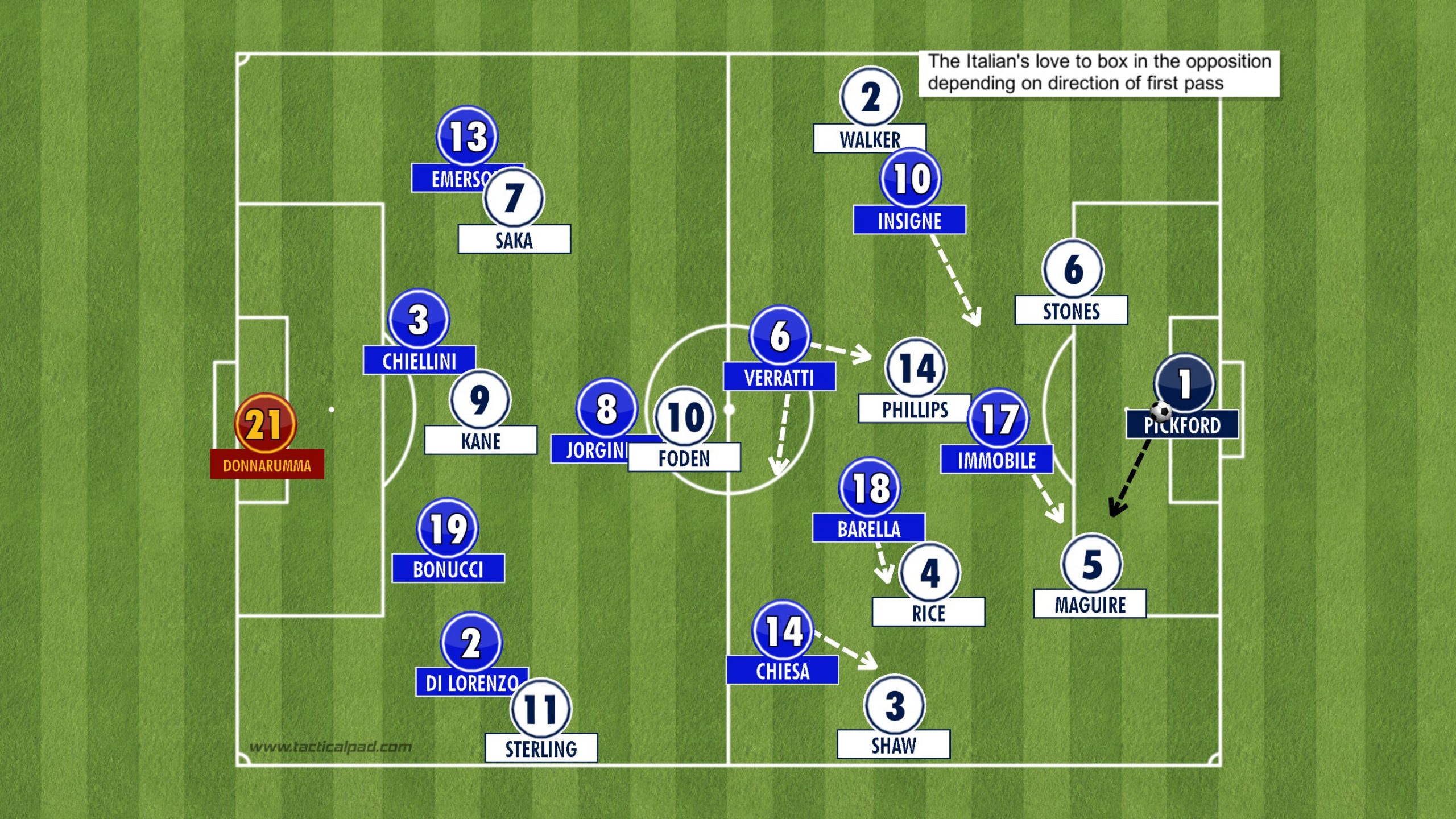 Stemming the Italians influence is a task which Mount and Foden should be well equipped to handle. Both have the dynamism, the agility and the football IQ to lock down a deep lying playmaker. The only slight issue in defeating this threat is that Italy can always bypass this by bringing Verratti deeper and going with a double pivot. Nevertheless the Spaniard's proved that stopping this Italian side from playing is not as difficult as it looks.