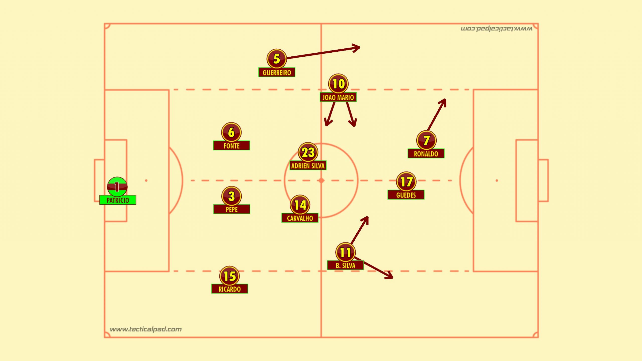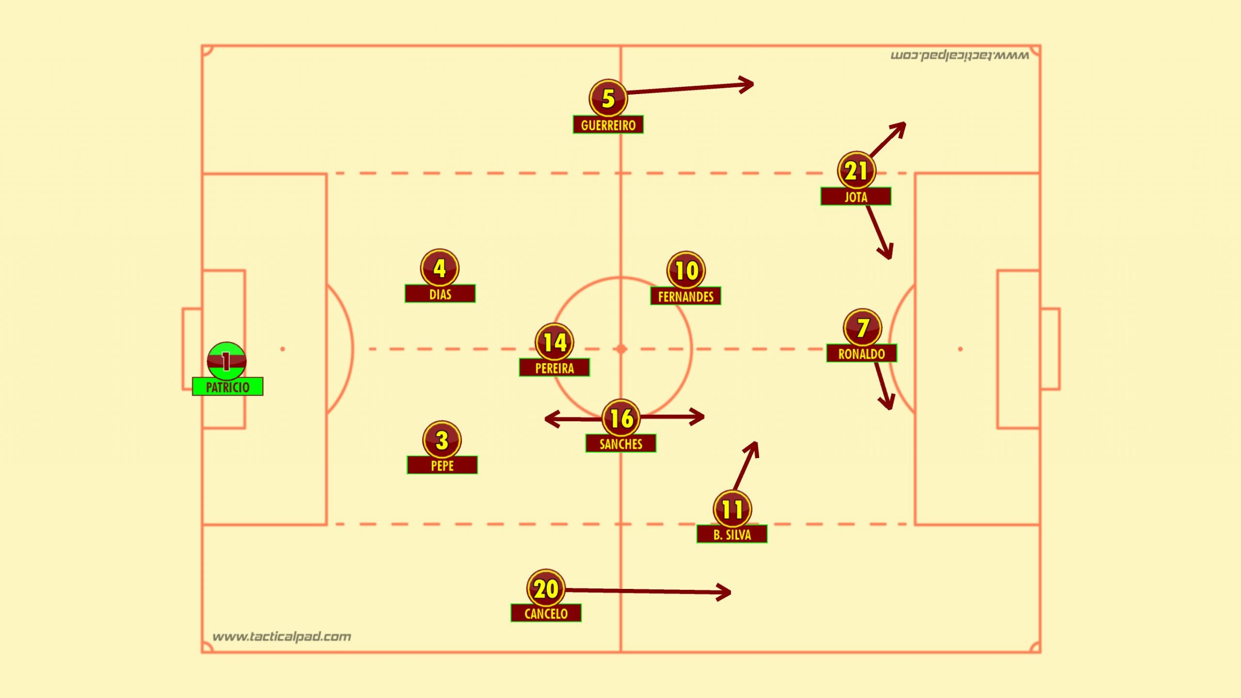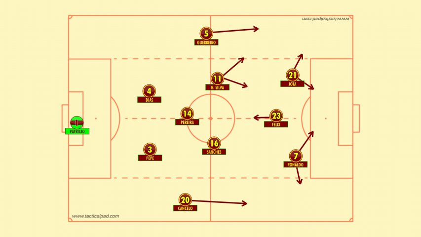 Historically speaking Portugal have tended not to press with the same vigour associated with their Iberian rivals and tend to adopt a deeper line, seeking to frustrate the opposition. This was partly in due to the fact that Ronaldo would refuse to partake in such a set up and furthermore Portugal did not posses a backline who would be comfortable playing proactively and with such a high line.